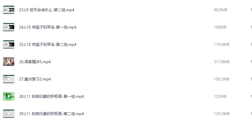 按 “语音精讲、重点复习、主题课程、真题听力” 四个模块整理成了清晰的目录: