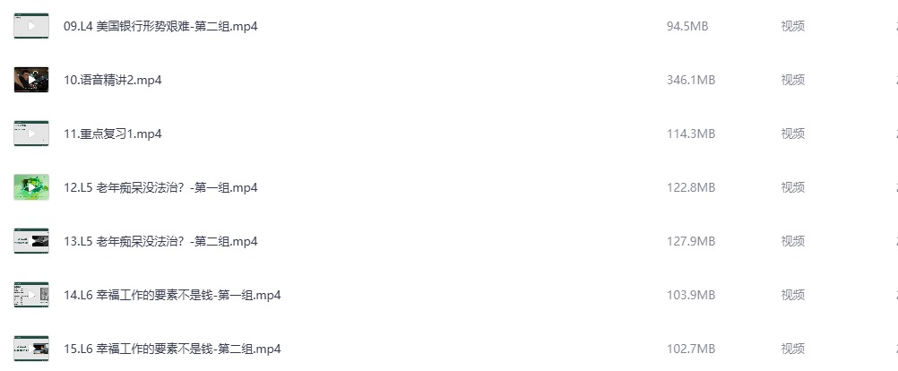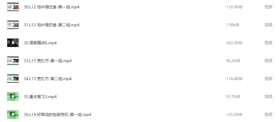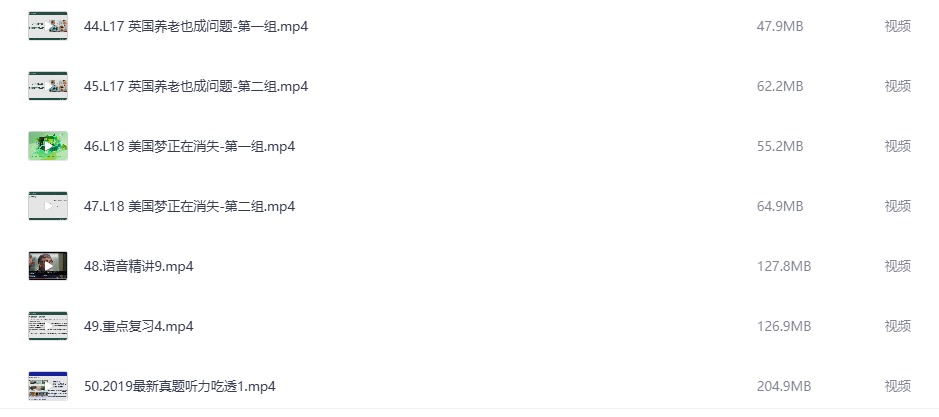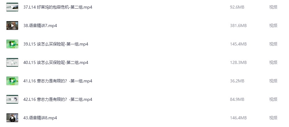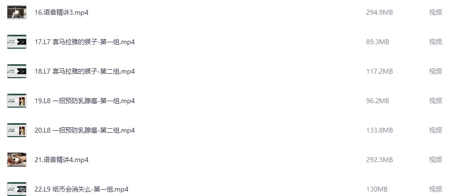 按 “语音精讲、重点复习、主题课程、真题听力” 四个模块整理成了清晰的目录:
